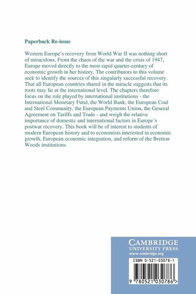 Western Europe's recovery from World War II was nothing short of miraculous. From the chaos of the war and the crisis of 1947, Europe moved directly to the most rapid quarter-century of economic growth in her history. The contributors to this volume seek to identify the sources of this singularly successful recovery. That all European countries shared in the miracle suggests that its roots may lie at the international level. The chapters therefore focus on the role played by international institutions - the International Monetary Fund, the World Bank, the European Coal and Steel Community, the European Payments Union, the General Agreement on Tariffs and Trade - and weigh the relative importance of domestic and international factors in Europe's postwar recovery. This book will be of interest to students of modern European history and to economists interested in economic growth, European economic integration, and reform of the Bretton Woods institutions.