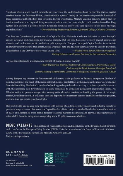 This book builds on a year-long discussion with a group of academics, policy-makers and industry experts to provide a long-term contribution to the Capital Markets Union project, launched by the European Commission in 2015. It identifies 36 cross-border barriers to capital markets integration and provides an organic plan, consisting of 33 policy recommendations, to relaunch EU financial integration. These aim to improve the key components of cross-border capital market transactions.