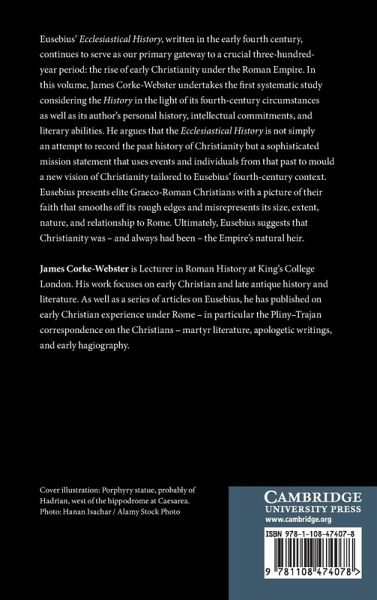 James Corke-Webster is Lecturer in Roman History at King's College London. His work focuses on early Christian and late antique history and literature. As well as a series of articles on Eusebius, he has published on early Christian experience under Rome - in particular the Pliny-Trajan correspondence on the Christians - martyr literature, apologetic writings, and early hagiography.