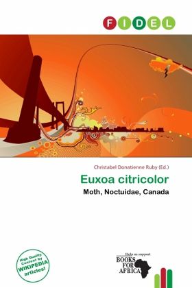 Please note that the content of this book primarily consists of articles available from Wikipedia or other free sources online. Euxoa citricolor is a moth of the Noctuidae family. It is found from eastern South Dakota and western North Dakota, northwest to southern Alberta, west to western Washington and south and east to southern California, New Mexico and Colorado. The wingspan is 34-37 mm. Adults are on wing in August to September. There is one generation per year. A moth is an insect closely related to the butterfly, both being of the order Lepidoptera. Moths form the majority of this order; there are thought to be 150,000 to 250,000 different species of moth (about ten times the number of species of butterfly), with thousands of species yet to be described.