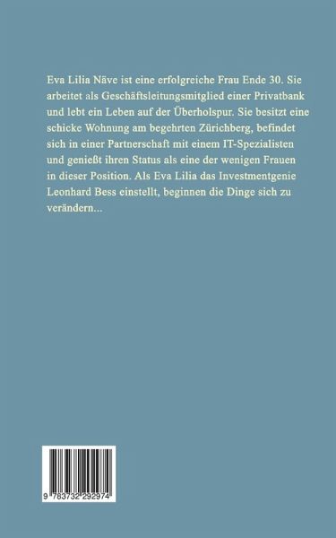 Der Roman "Eva Lilia" spielt vor dem Hintergrund der Züricher Bankenszene. Eva Lilia Näve ist eine erfolgreiche Frau Ende 30. Sie arbeitet als Geschäftsleitungsmitglied einer Privatbank und lebt ein Leben auf der Überholspur. Sie besitzt eine schicke Wohnung am begehrten Zürichberg, befindet sich in einer Partnerschaft mit einem IT-Spezialisten und genießt ihren Status als eine der wenigen Frauen in dieser Position. Als Eva Lilia das Investmentgenie Leonhard Bess einstellt, beginnen die Dinge sich zu verändern...