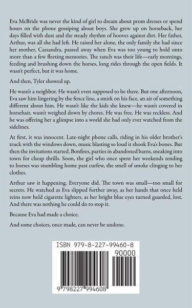 Eva McBride was never the kind of girl to dream about prom dresses or spend hours on the phone gossiping about boys. She grew up on horseback, her days filled with dust and the steady rhythm of hooves against dirt. Her father, Arthur, was all she had left. He raised her alone, the only family she had since her mother, Cassandra, passed away when Eva was too young to hold onto more than a few fleeting memories. The ranch was their life-early mornings, feeding and brushing down the horses, long rides through the open fields. It wasn't perfect, but it was home. And then, Tyler showed up. He wasn't a neighbor. He wasn't even supposed to be there. But one afternoon, Eva saw him lingering by the fence line, a smirk on his face, an air of something different about him. He wasn't like the kids she knew-he wasn't covered in horsehair, wasn't weighed down by chores. He was free. He was reckless. And he was offering her a glimpse into a world she had only ever watched from the sidelines. At first, it was innocent. Late-night phone calls, riding in his older brother's truck with the windows down, music blasting so loud it shook Eva's bones. But then the invitations started. Bonfires, parties in abandoned barns, sneaking into town for cheap thrills. Soon, the girl who once spent her weekends tending to horses was stumbling home past curfew, the smell of smoke clinging to her clothes. Arthur saw it happening. Everyone did. The town was small-too small for secrets. He watched as Eva slipped further away, as her hands that once held reins now held cigarette lighters, as her bright blue eyes turned guarded, lost. And there was nothing he could do to stop it. Because Eva had made a choice. And some choices, once made, can never be undone.