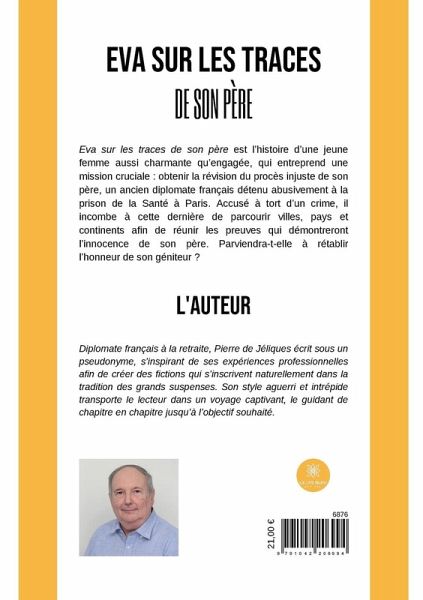 Eva sur les traces de son père est l'histoire d'une jeune femme aussi charmante qu'engagée, qui entreprend une mission cruciale: obtenir la révision du procès injuste de son père, un ancien diplomate français détenu abusivement à la prison de la Santé à Paris. Accusé à tort d'un crime, il incombe à cette dernière de parcourir villes, pays et continents afin de réunir les preuves qui démontreront l'innocence de son père. Parviendra-t-elle à rétablir l'honneur de son géniteur ?