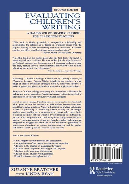 Evaluating Children's Writing: A Handbook of Grading Choices for Classroom Teachers, Second Edition introduces and explains a wide range of specific evaluation strategies used by classroom teachers to arrive at grades and gives explicit instructions for implementing them. Samples of student writing accompany the instructions to illustrate the techniques, and an appendix of additional student writing is provided to allow readers to practice particular evaluation strategies. More than just a catalog of grading options, however, this is a handbook with a point of view. Its purpose is to help teachers become intentional about their grading practices. Along with recipes for grading techniques, it offers a philosophy of evaluating student writing that encourages teachers to put grading into a communication context and to make choices among the many options available by determining the instructional purpose of the assignment and considering the advantages and disadvantages of particular grading strategies. Specific grading techniques are integrated with suggestions about the craft of evaluation--guidelines for instructional objectives, for student audience analysis, and for teacher self-analysis that help define communication contexts. New in the Second Edition: *a new chapter on state standards and assessments; *a reorganization of the chapter on approaches to grading; *additions to the chapter on management systems; *additions to the chapter on teaching yourself to grade; *additions to the annotated bibliography; and *updated references throughout the text.