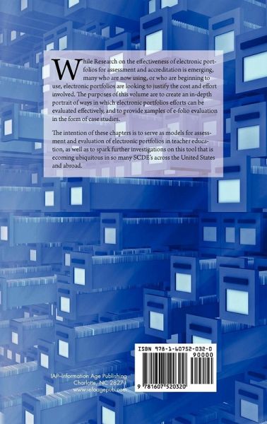 A volume in Research Methods in Educational Technology Series Editor Walter F. Heinecke, University of Virginia While Research on the effectiveness of electronic portfolios for assessment and accreditation is emerging, many who are now using, or who are beginning to use, electronic portfolios are looking to justify the cost and effort involved. The purposes of this volume are to create an in-depth portrait of ways in which electronic portfolios efforts can be evaluated effectively, and to provide examples of e-folio evaluation in the form of case studies. The intention of these chapters is to serve as models for assessment and evaluation of electronic portfolios in teacher education, as well as to spark further investigations on this tool that is becoming ubiquitous in so many SCDE's across the United States and abroad.