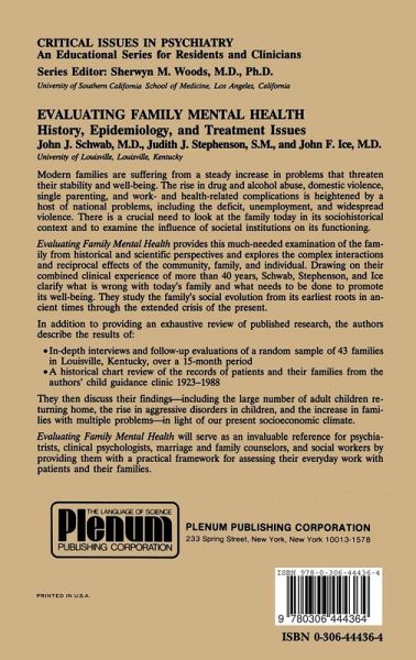 At the time of this writing, there is much uncertainty about the form of this country's future healthcare system and the role of psychiatry and other mental health disciplines in that system. Current experience with various managed healthcare programs is not encouraging. Most often patients with severe psychiatrie disturbances receive, at best, so me form of crisis intervention or brief treatment. Marital and family approaches to treatment receive even less support. This discouraging socioeconomic context makes the work of John Schwab and his colleagues even more important than it would be in more favorable times. Their message is clear: The family is crucial to an understanding of psychiatrie disorders and must often be the major focus in the treatment of these disorders. This book is unique in its direct reflection of the senior author's long-term professional interests-the family, epidemiology, and history. A careful reading provides family therapists and researchers with won derful opportunities to examine the ways in which history, socio economie and politieal contexts, and epidemiology can be used to in crease understanding of the family. This his tory of the family is unusually thorough; in particular, I found fascinating the information about early Egyptian families (3000 B.C.) and their accordance of high status of women.