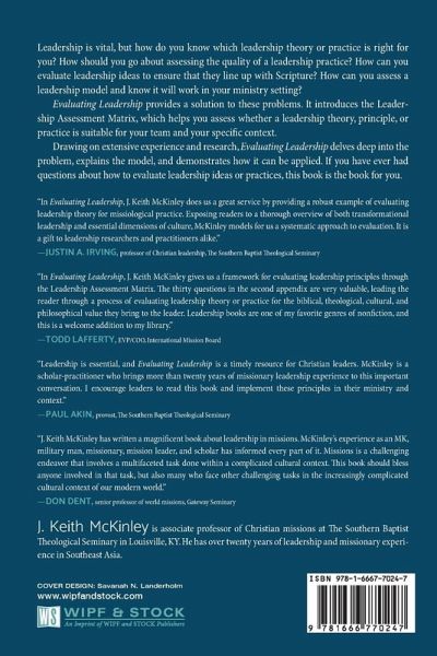 Leadership is vital, but how do you know which leadership theory or practice is right for you? How should you go about assessing the quality of a leadership practice? How can you evaluate leadership ideas to ensure that they line up with Scripture? How can you assess a leadership model and know it will work in your ministry setting? Evaluating Leadership provides a solution to these problems. It introduces the Leadership Assessment Matrix, which helps you assess whether a leadership theory, principle, or practice is suitable for your team and your specific context. Drawing on extensive experience and research, Evaluating Leadership delves deep into the problem, explains the model, and demonstrates how it can be applied. If you have ever had questions about how to evaluate leadership ideas or practices, this book is the book for you.