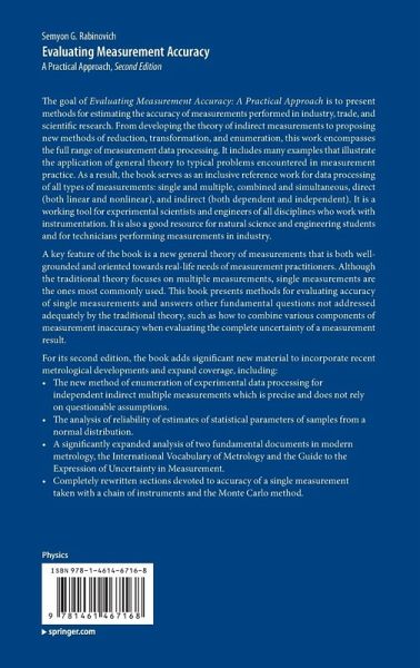 This new edition adds a method for estimating accuracy of indirect measurements with independent arguments, whose development Dr. Rabinovich was able to complete very recently. This method, which is called the Method of Enumeration, produces estimates that are no longer approximate, similar to the way the method of reduction described in the first edition removed approximation in estimating uncertainty of indirect measurements with dependent arguments. The method of enumeration completes addressing the range of problems whose solutions signify the emergence of the new theory of accuracy of measurements. A new method is added for building a composition of histograms, and this method forms a theoreticalbasis for the method of enumeration.Additionally, as a companion to this book, a concise practical guide that assembles simple step-by-step procedures for typical tasks the practitioners are likely to encounter in measurement accuracy estimation is available at SpringerLink.