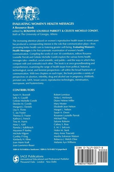 The increased attention currently being paid to women's reproductive health issues has produced a corresponding interest in the role that communication plays in promoting better health care. Groundbreaking and comprehensive, this book is the first systematic examination of the major types and forms of messages about women's reproductive health - medical, social scientific and public - and the degree to which these messages compare with and contradict each other. Within the broad framework of communication, a range of women's health issues are examined in this book from political, historical, technological and feminist perspectives. The issues examined include: abortion; infertility; drug and alcohol use in pregnancy; childbirth; AIDS; menstruation and menopause.