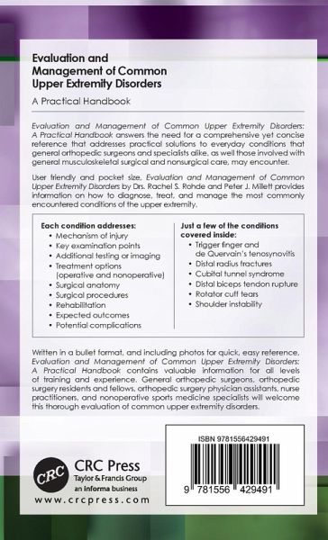Evaluation and Management of Common Upper Extremity Disorders: A Practical Handbook answers the need for a comprehensive, yet concise reference that addresses practical solutions to everyday conditions that general orthopedic surgeons, and specialists alike may encounter.