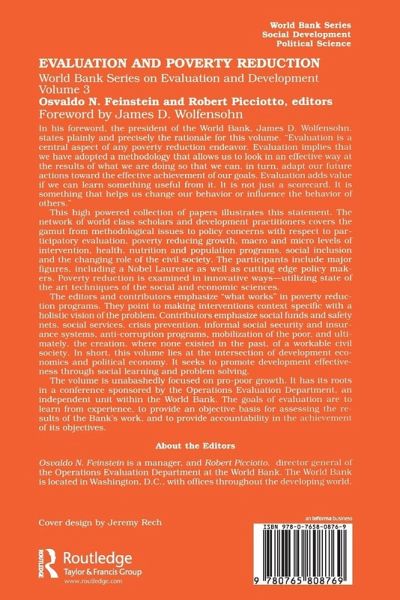 In his foreword, the president of the World Bank, James D. Wolfensohn, states plainly and precisely the rationale for this volume. "Evaluation is a central aspect of any poverty reduction endeavor. Evaluation implies that we have adopted a methodology that allows us to look in an effective way at the results of what we are doing so that we can, in turn, adapt our future actions toward the effective achievement of our goals. Evaluation adds value if we can learn something useful from it. It is not just a scorecard. It is something that helps us change our behavior or influence the behavior of others."This high powered collection of papers illustrates this statement. The network of world class scholars and development practitioners covers the gamut from methodological issues to policy concerns with respect to participatory evaluation, poverty reducing growth, macro and micro levels of intervention, health, nutrition and population programs, social inclusion and the changing role of the civil society. The participants include major figures, including a Nobel Laureate as well as cutting edge policy makers. Poverty reduction is examined in innovative ways-utilizing state of the art techniques of the social and economic sciences.The editors and contributors emphasize "what works" in poverty reduction programs. They point to making interventions context specific with a holistic vision of the problem. Contributors emphasize social funds and safety nets, social services, crisis prevention, informal social security and insurance systems, anti-corruption programs, mobilization of the poor, and ultimately, the creation, where none existed in the past, of a workable civil society. In short, this volume lies at the intersection of development economics and political economy. It seeks to promote development effectiveness through social learning and problem solving.The volume is unabashedly focussed on pro-poor growth. It has its roots in a conference sponsored by the Operations Evaluation Department, an independent unit within the World Bank. The goals of evaluation are to learn from experience, to provide an objective basis for assessing the results of the Bank's work, and to provide accountability in the achievement of its objectives.Osvaldo N. Feinstein is a manager, and Robert Picciotto, director general of the Operations Evaluation Department. The World Bank is located in Washington, D.C. with offices throughout the developing world.
