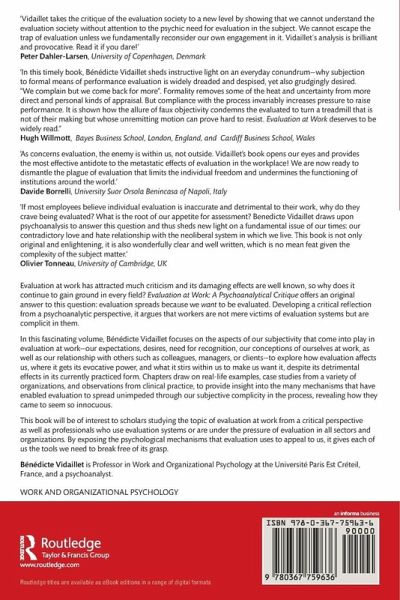 'If most employees believe individual evaluation is inaccurate and detrimental to their work, why do they crave being evaluated? What is the root of our appetite for assessment? Benedicte Vidaillet draws upon psychoanalysis to answer this question and thus sheds new light on a fundamental issue of our times: our contradictory love and hate relationship with the neoliberal system in which we live. This book is not only original and enlightening, it is also wonderfully clear and well written, which is no mean feat given the complexity of the subject matter.' - Olivier Tonneau, University of Cambridge, UK