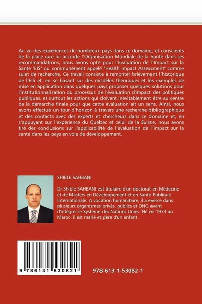 Au vu des expériences de nombreux pays dans ce domaine, et conscients de la place que lui accorde l'Organisation Mondiale de la Santé dans ses recommandations, nous avons opté pour l'Evaluation de l'Impact sur la Santé "EIS" ou communément appelé "Health Impact Assessment" comme sujet de recherche. Ce travail consiste à remonter brièvement l'historique de l'EIS et, en se basant sur des modèles théoriques et les exemples de mise en application dans quelques pays,proposer quelques solutions pour l'institutionnalisation du processus de l'évaluation d'impact des politiques publiques, et surtout les actions qui doivent inévitablement être au centre de la démarche finale pour que cette évaluation ait un sens. Ainsi, nous avons effectué un tour d'horizon à travers une recherche bibliographique et des contacts avec des experts et chercheurs dans ce domaine et, en s'appuyant sur l'expérience du Québec et celui de la Suisse, nous avons tiré des conclusions sur l'applicabilité de l'évaluation de l'impact sur la santé dans les pays en voie de développement.