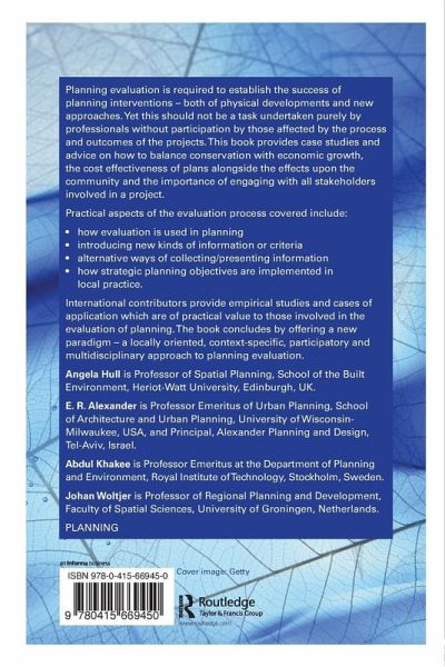 Planning evaluation is required to establish the success of planning interventions - both of physical developments and new approaches. Yet this should not be a task undertaken purely by professionals without participation by those affected by the process and outcomes of the projects. This book provides case studies and advice on how to balance conservation with economic growth, the cost effectiveness of plans alongside the effects upon the community and the importance of engaging with all stakeholders involved in a project. Practical aspects of the evaluation process covered include: how evaluation is used in planning introducing new kinds of information or criteria alternative ways of collecting/presenting information how strategic planning objectives are implemented in local practice. International contributors provide empirical studies and cases of application which are of practical value to those involved in the evaluation of planning. The book concludes by offering a new paradigm - a locally oriented, context-specific, participatory and multi-disciplinary approach to planning evaluation.