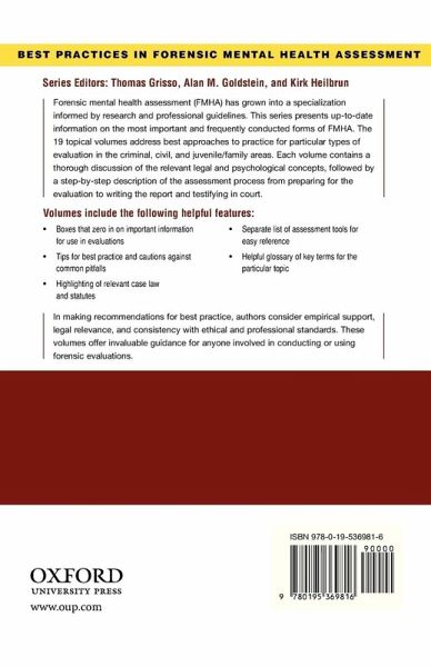 Forensic mental health assessment (FMHA) has grown into a specialization informed by research and professional guidelines. This series presents up-to-date information on the most important and frequently conducted forms of FMHA. The 19 topical volumes address best approaches to practice for particular types of evaluation in the criminal, civil, and juvenile/family areas. Each volume contains a thorough discussion of the relevant legal and psychological concepts, followed by a step-by-step description of the assessment process from preparing for the evaluation to writing the report and testifying in court. Volumes include the following helpful features: Boxes that zero in on important information for use in evaluations Tips for best practice and cautions against common pitfalls Highlighting of relevant case law and statutes Separate list of assessment tools for easy reference Helpful glossary of key terms for the particular topic In making recommendations for best practice, authors consider empirical support, legal relevance, and consistency with ethical and professional standards. These volumes offer invaluable guidance for anyone involved in conducting or using forensic evaluations.