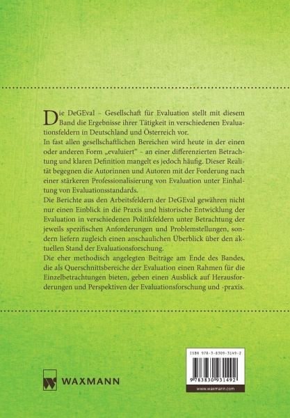 Die DeGEval - Gesellschaft für Evaluation stellt mit diesem Band die Ergebnisse ihrer Tätigkeit in verschiedenen Evaluationsfeldern in Deutschland und Österreich vor.