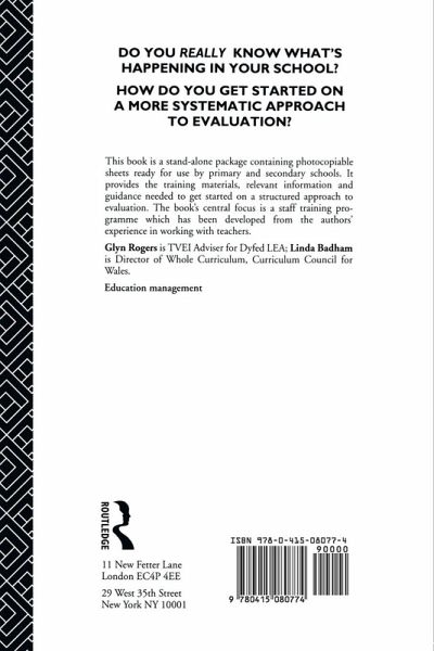 First published in 1992. This introductory handbook provides the training materials, relevant information and guidance needed to get started on a structured approach to evaluation. In particular, Evaluation in Schools: * concentrates on a practical approach to training key personnel * offers valuable training models and photocopiable worksheets * written specially for the non-expert * includes objectives, outline programmes and workshop briefings.