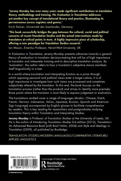 'Jeremy Munday has over many years made significant contributions to translation theory, methodology and training. His "Evaluation in Translation" addresses yet another key concept of translational theory and practice, illuminating its pervasiveness across registers and genres. I am sure that the book will offer insights both to those interested in textuality - the product - and to those coming from the perspective of the practising translator - who ultimately are the ones creating textuality through their decision making.'