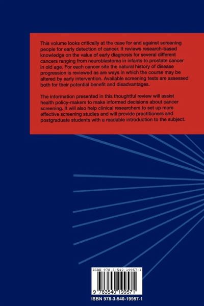 "...a thorough and high quality review....I am delighted that this book has found its way onto my shelves." - Cancer Forum "This book is a good starting point for anybody who wishes to understand the pros and cons of introducing a given screening programme." Int. Journal of Epidemiology