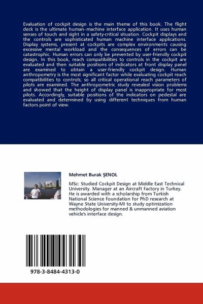 Evaluation of cockpit design is the main theme of this book. The flight deck is the ultimate human machine interface application. It uses human senses of touch and sight in a safety-critical situation. Cockpit displays and the controls are sophisticated human machine interface applications. Display systems, present at cockpits are complex environments causing excessive mental workload and the consequences of errors can be catastrophic. Human errors can only be prevented by user-friendly cockpit design. In this book, reach compatibilities to controls in the cockpit are evaluated and then suitable positions of indicators at front display panel are examined to obtain a user-friendly cockpit design. Human anthropometry is the most significant factor while evaluating cockpit reach compatibilities to controls; so all critical operational reach parameters of pilots are examined. The anthropometric study revealed vision problems and showed that the height of display panel is inappropriate for most pilots. Accordingly, suitable positions of the indicators on pedestal are evaluated and determined by using different techniques from human factors point of view.