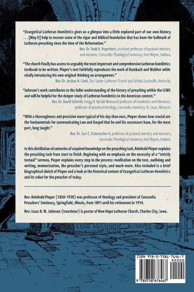 This translation of Reinhold Pieper's Evangelical Lutheran Homiletics offers a fuller understanding of the history of preaching within the LCMS as typified by C. F. W. Walther. Pieper, a student of Walther who would serve as homiletics professor and president of Concordia Preachers' Seminary from 1891-1914, dissects the task of preaching from start to finish as inspired by the classic German homiletics textbook by J. J. Rambach. Within this work, Pieper outlines the following aspects of the preaching process, all while affirming the necessity of a "strictly textual" sermon. Meditation on the text Outlining and writing the sermon Memorizing the sermon Accounting for the preacher's personal style And much more. This, the first official homiletics textbook for use in the LCMS, is an invaluable resource for any pastor or seminary student who wishes to gain a better understanding of thought and practice of Lutheran homiletics.