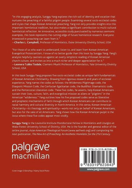 In this book Sunggu Yang proposes five socio-ecclesial codes as unique faith fundamentals of Korean American Christianity. Drawing from rigorous research and years of ecclesial experience, Yang names the codes as follows: the Wilderness Pilgrimage code, the Diasporic Mission Code, the Confucian Egalitarian code, the Buddhist Shamanistic code, and the Pentecostal Liberation code. These five codes, he asserts, help Korean Americans sustain their lives, culture, faith, and evangelical mission as aliens or "pilgrims" in the American "wilderness." Yang outlines how his five proposed codes serve as liberative and prophetic mechanisms of faith through which Korean Americans can contribute to racial harmony and cultural diversity in North America. In this sense, Korean American Christianity-its theology and spirituality-works not only on behalf of Korean Americans, but also for the sake of all Americans. Yang shows how the Korean American pulpit is the locus where these five codes appearmostvividly.