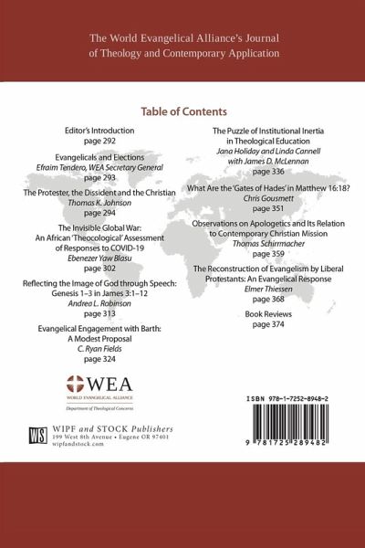 ERT publishes quality articles and book reviews from around the world (both original and reprinted) from an evangelical perspective, reflecting global evangelical scholarship for the purpose of discerning the obedience of faith, and of relevance and importance to its international readership of theologians, educators, church leaders, missionaries, administrators and students. The journal is published as a ministry rather than as a commercial project, seeking to be of service to the worldwide spread of the gospel and the building up of the church and its leadership, in co-ordination with the World Evangelical Alliance's broader mission and activities.