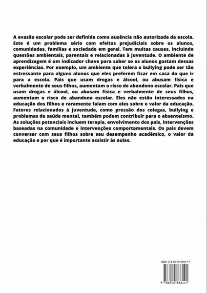 A evasão escolar pode ser definida como ausência não autorizada da escola. Este é um problema sério com efeitos prejudiciais sobre os alunos, comunida