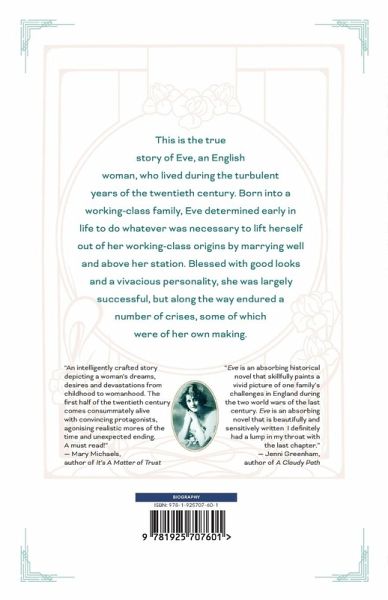 This is the true story of Eve, an English woman, who lived during the turbulent years of the twentieth century. Born into a working-class family, Eve determined early in life to do whatever was necessary to lift herself out of her working-class origins by marrying well and above her station. Blessed with good looks and a vivacious personality, she was largely successful, but along the way endured a number of crises, some of which were of her own making.