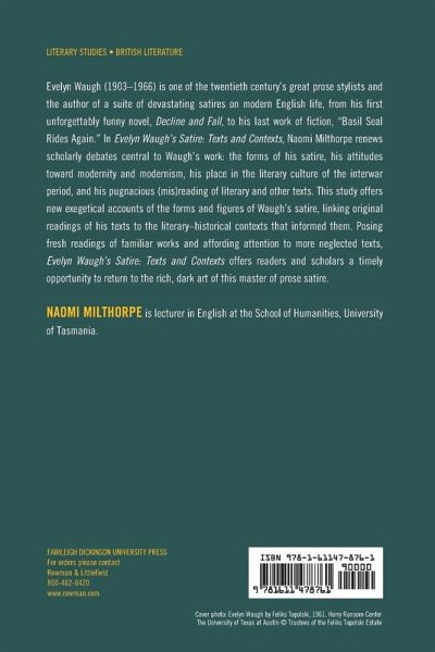 Waugh is a perennial subject for literary scholars; most studies published in the past thirty years take a strongly biographical approach, using Waugh’s life and faith as lenses through which to critique the fiction. Evelyn Waugh’s Satire takes a different approach: using frameworks of modernist studies, intertextuality, satire theory, and the contexts of the interwar period, Milthorpe renews debates about the targets and tactics of Waugh’s satire.