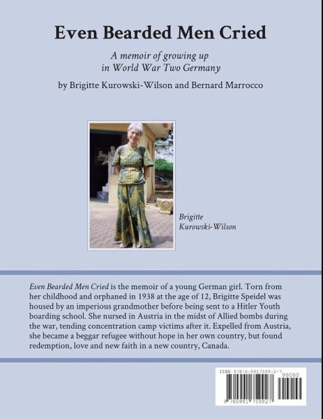 Even Bearded Men Cried is the memoir of a young German girl. Torn from her childhood and orphaned in 1938 at the age of 12, Brigitte Speidel was housed by an imperious grandmother before being sent to a Hitler Youth boarding school. She nursed in Austria in the midst of Allied bombs during the war, tending concentration camp victims after it. Expelled from Austria, she became a beggar refugee without hope in her own country, but found redemption, love and new faith in a new country, Canada. The book includes maps and photographs.