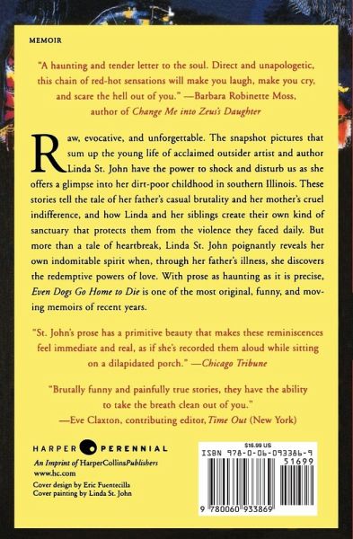 Raw, evocative, and unforgettable. The snapshot pictures that sum up the young life of acclaimed outsider artist and author Linda St. John have the power to shock and disturb us as she offers a glimpse into her dirt-poor childhood in southern Illinois. These stories tell the tale of her father's casual brutality and her mother's cruel indifference, and how Linda and her siblings create their own kind of sanctuary that protects them from the violence they faced daily. But more than a tale of heartbreak, Linda St. John poignantly reveals her own indomitable spirit when, through her father's illness, she discovers the redemptive powers of love. With prose as haunting as it is precise, Even Dogs Go Home to Die is one of the most original, moving, funny, and heartbreaking memoirs of recent years.