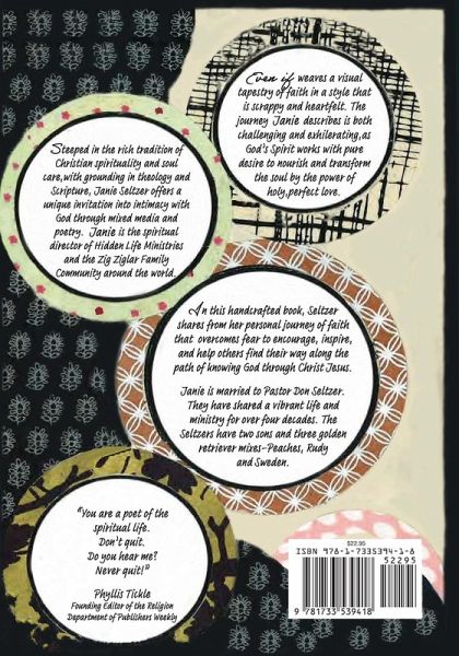 Enjoy a life brimming with love and free of fear! Even If weaves a visual and poetic tapestry of faith that is both scrappy and heartfelt. In this hand-crafted book, Janie relates her own journey of learning to trust God, even to the point of overcoming life-gripping fear. Her desire is to encourage, inspire, and help others find their way to wholeness of life and freedom from fear. The journey Seltzer describes is both challenging and exhilarating as God's Spirit works with pure desire to nourish and transform the soul by the power of holy, perfect love. Steeped in the rich tradition of Christian spirituality and soul care, with grounding in theology and Scripture, Janie offers a unique invitation into intimacy with God through mixed media and poetry reminiscent of the Psalms. Janie is a poet and artist of the spiritual life (JaniePoet), as well as the spiritual director for Hidden Life Ministries and the Zig Ziglar Community International.