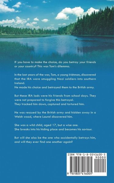 If you have to make the choice, do you betray your friends or your country? This was Tom's dilemma. In the last years of the war, Tom, a young Irishman, discovered that the IRA were smuggling Nazi soldiers into southern Ireland. He made his choice and betrayed them to the British army. But these IRA lads were his friends from school days. They were not prepared to forgive this betrayal. They tracked him down, captured and tortured him. He was rescued by the British army and hidden away in a Welsh wood, where Laurel discovered him. She was a wild child, aged 17, but a wise one. She breaks into his hiding place and becomes his saviour. But will she also be the one who accidentally betrays him, and will they ever find one another again?