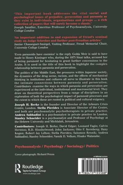 'Even paranoids have enemies' is the reply Golda Meir is said to have made to Henry Kissinger who, during the 1973 Sinai talks, accused her of being paranoid for hesitating to grant further concessions to the Arabs. It is used as part of the title of this book to highlight the complex relationship between paranoia and persecution. The politics of the Middle East, the pressures within Japanese society, the dynamics of the drug scene, racism, and the effects of mechanical thinking in institutions and cultures all serve to illustrate in this book the intimate connections between paranoia and persecution. Contributors examine the ways in which paranoia and persecution are experienced at the individual, institutional and macrosocial level. They draw on theoretical perspectives from a range of disciplines in an exploration of both the psychological impact of paranoid processes and the extent to which these processes are rooted in political and cultural exigency.