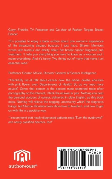 When I was told I needed chemotherapy I froze with fear. The word itself has almost mystical powers, conjuring up vivid mental images of frail, shadow-like people curled up on beds, quietly writhing in agony and slowly losing the will to live. In truth I'd never really thought about what it actually was, I just knew it was bad. I asked my family and friends what they thought chemotherapy was and, bearing in mind how prevalent cancer is these days, the responses were as varied as they were downright peculiar: "I've never actually been sure what's involved, but I know it's unpleasant." "It's a large machine you slide into, a bit like the old iron lung machine," (does anyone remember the old iron lung machine?)" "Every bit of your body's bombarded by deadly rays." "It's an injection that lasts for hours and hours." Well, here are just four good reasons why I needed to dispel some ridiculous myths about cancer treatment. Even the eyebrows? is an honest account of what to expect before, during and after treatment, and a guide to making the journey as comfortable and calm as humanly possible.