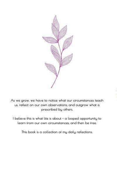 As we grow, we have to learn from what our circumstances teach us, reflect on our own observations, and outgrow what is prescribed by others. I believe this is what life is about - a looped opportunity to learn from our own circumstances, and then be free. This book is a collection of my daily reflections.