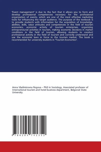 "Event management" is due to the fact that it allows you to form and develop professional competencies necessary for the professional organization of events, which are one of the most effective marketing tools for influencing the target audience. The purpose of the textbook is to provide students with information for the acquisition of knowledge, abilities, skills, value attitudes and competencies in the field of tourism economics, economic activity of tourism enterprises, organizing entrepreneurial activities in tourism, making economic decisions in market conditions in the field of tourism, allowing students to conduct professional activity in the field of tourism and correctly understand and use the economic laws in force in the tourism market. The book is recommended for university students in "Tourism Economics".