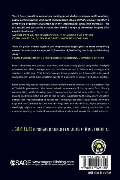 "Rojek's argument is a psychological one, although his message is political: global events build on people's needs to feel empowered and jointly engaged in the pursuit of a higher purpose; they allow a break from daily routines, provide an illusion of intimacy and social membership, and create a sense of self-validation and personal gratification. In short, participation in such events makes us feel good. At the same time, the real effect of global events seems to be the maintenance of global inequality and social injustice, as well as huge profits for the organizations involved in planning, commercializing and securing these happenings. In sketching out this palliative function of global events from the perspective of people's needs on the one hand, and unveiling their puppet masters backstage on the other, Rojek's book presents a compelling account of the role of organized events in modern society."" - Organization Studies Events dominate our screens, our lives, and increasingly global geopolitics. Analysis of events and their management has remained rooted in leisure and management studies - until now. This break-through book provides an introduction to event management, while also situating events in questions of power and social control. Rojek powerfully argues that events are essential elements in corporate-state partnerships of 'invisible government' that have revived the romance of charity as to form illusory communities, while cloaking power imbalances and social inequalities. Events are moving politics from the old idea of 'the personal is political' to the new, more seductive notion that 'representation is resistance'. Wielding rich case studies from the World Cup and the Olympics to Live Aid, Burning Man and Mardi Gras, Rojek presents a dazzlingly original account of communication power, social ordering and control. It is essential reading in media & communication studies and across the social sciences.
