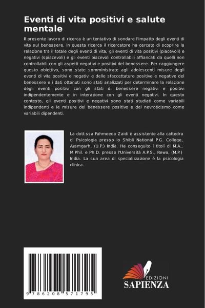 Il presente lavoro di ricerca è un tentativo di sondare l'impatto degli eventi di vita sul benessere. In questa ricerca il ricercatore ha cercato di scoprire la relazione tra il totale degli eventi di vita, gli eventi di vita positivi (piacevoli) e negativi (spiacevoli) e gli eventi piacevoli controllabili affiancati da quelli non controllabili con gli aspetti negativi e positivi del benessere. Per raggiungere questo obiettivo, sono state somministrate agli adolescenti misure degli eventi di vita positivi e negativi e delle sfaccettature positive e negative del benessere e i dati ottenuti sono stati analizzati per determinare la relazione degli eventi positivi con gli stati di benessere negativi e positivi indipendentemente e in interazione con gli eventi negativi. In questo contesto, gli eventi positivi e negativi sono stati studiati come variabili indipendenti e le misure del benessere positivo e del nevroticismo come variabili dipendenti.