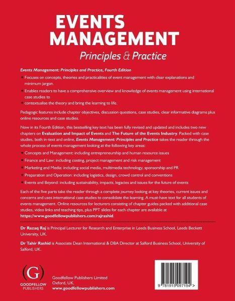 Now in its Fourth Edition, this key text has been fully revised and updated and includes two new chapters on Evaluation and Impact of Events and The Future of the Events Industry. Packed with case studies, both in-text and online, it takes the reader through the whole process of events management.
