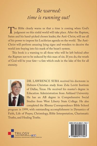 Be warned: time is running out! The Bible clearly warns us that a time is coming when God's judgment on this sinful world will take place. After the Rapture, Satan and his hand-picked chosen leader, the Anti-Christ, will use all of his power to impose his Luciferian agenda on the world. The Anti-Christ will perform amazing lying signs and wonders to deceive the world into buying into his mark of the beast's system. This book is a warning to all those who will be left behind after the Rapture not to be seduced by this man of sin. If you do, the wrath of God will be your fate-a fate which ends in the lake of fire for all eternity.