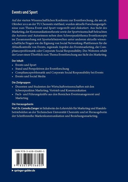 Auf der vierten Wissenschaftlichen Konferenz zur Eventforschung, die am 26. Oktober 2012 an der TU Chemnitz stattfand, wurden aktuelle Forschungsergebnisse zum Thema Event und Sport vorgestellt und diskutiert. Aus Sicht des Marketing, der Kommunikationstheorie sowie der Sportwissenschaft beleuchten die Autoren und Autorinnen neben dem Schwerpunktthema Eventkonzepte im Zusammenhang mit Sporterlebniswelten unter anderem aktuelle wissenschaftliche Fragen wie die Eignung von Social Networking-Plattformen für die Ablaufkontrolle von Events, regionale Aspekte des Eventmarketing, die Complianceproblematik oder Corporate Social Responsibility. Des Weiteren erhält der Leser einen Überblick zum Thema Eventforschung aus Sicht des Marketing.