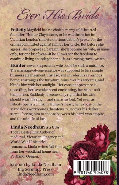 USA Today bestselling author Linda Needham crafts a passionate tale of Beauty and the Beast in this mismatched, marriage-of-convenience between a dark and brooding financier, and a free-spirited travel-writer. Felicity Mayfield has no choice: marry cold-hearted financier, Hunter Claybourne, or he will throw her into Victorian London's most notorious debtor's prison for the crimes committed against him by her uncle. But before she agrees, she proposes a bargain: she'll become his wife, in name only for one brief year-if he allows her the freedom to continue living an independent life as a roving travel writer. Hunter never suspected a wife could be such a nuisance. The marriage-of-convenience was supposed to be a simple business arrangement. Instead, she invades his cavernous home, rearranges the furniture, wins over his servants, and blinds him with her sunlight. Her constant presence is unsettling, her lavender scent enchanting, her skin a soft temptation. Suddenly it seems only right that she should wear his ring...and share his bed. After all, she is his wife. Yet even as Felicity opens a chink in Hunter's heart, her exposé of the scandalous workhouses threatens to uncover his darkest secret, forcing him to choose between his hard-won empire and the miracle of love.