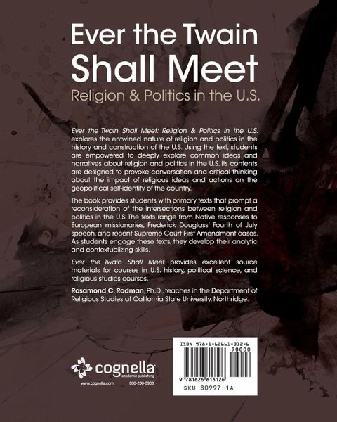 Ever the Twain Shall Meet: Religion & Politics in the U.S. explores the entwined nature of religion and politics in the history and construction of the U.S. Using the text, students are empowered to deeply explore common ideas and narratives about religion and politics in the U.S. Its contents are designed to provoke conversation and critical thinking about the impact of religious ideas and actions on the geopolitical self-identity of the country. The book provides students with primary texts that prompt a reconsideration of the intersections between religion and politics in the U.S. The texts range from Native responses to European missionaries, Frederick Douglass’ Fourth of July speech, and recent Supreme Court First Amendment cases. As students engage these texts, they develop their analytic and contextualizing skills. Ever the Twain Shall Meet provides excellent source materials for courses in U.S. history, political science, and religious studies courses.