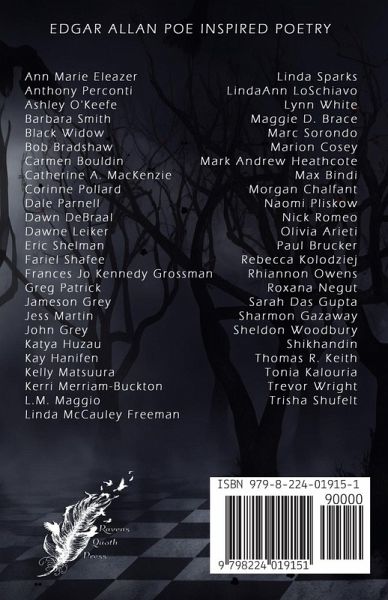 Dark, Edgar Allan Poe-Inspired Poetry by international poets Featured Authors Ann Marie Eleazer Anthony Perconti Ashley O'Keefe Barbara Smith Black Widow Bob Bradshaw Carmen Bouldin Catherine A. MacKenzie Corinne Pollard Dale Parnell Dawn DeBraal Dawne Leiker Eric Shelman Fariel Shafee Frances Jo Kennedy Grossman Greg Patrick Jameson Grey Jess Martin John Grey Katya Huzau Kay Hanifen Kelly Matsuura Kerri Merriam-Buckton L.M. Maggio Linda McCauley Freeman Linda Sparks LindaAnn LoSchiavo Lynn White Maggie D. Brace Marc Sorondo Marion Cosey Mark Andrew Heathcote Max Bindi Morgan Chalfant Naomi Pliskow Nick Romeo Olivia Arieti Paul Brucker Rebecca Kolodziej Rhiannon Owens Roxana Negü Sarah Das Gupta Sharmon Gazaway Sheldon Woodbury Shikhandin Thomas R. Keith Tonia Kalouria Trevor Wright Trisha Shufelt