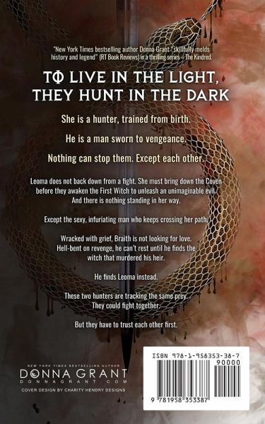 New York Timesbestselling author Donna Grant "skillfully melds history and legend" (RT Book Reviews) in a brand new series - The Kindred. She is a hunter, trained from birth. He is a man sworn to vengeance. Nothing can stop them. Except each other. Leoma does not back down from a fight. She must bring down the Coven before they awaken the First Witch to unleash an unimaginable evil. And there is nothing standing in her way. Except the sexy, infuriating man who keeps crossing her path. Wracked with grief, Braith is not looking for love. Hell-bent on revenge, he can't rest until he finds the witch that murdered his heir. He finds Leoma instead. These two hunters are tracking the same prey. They could fight together. But they have to trust each other first.