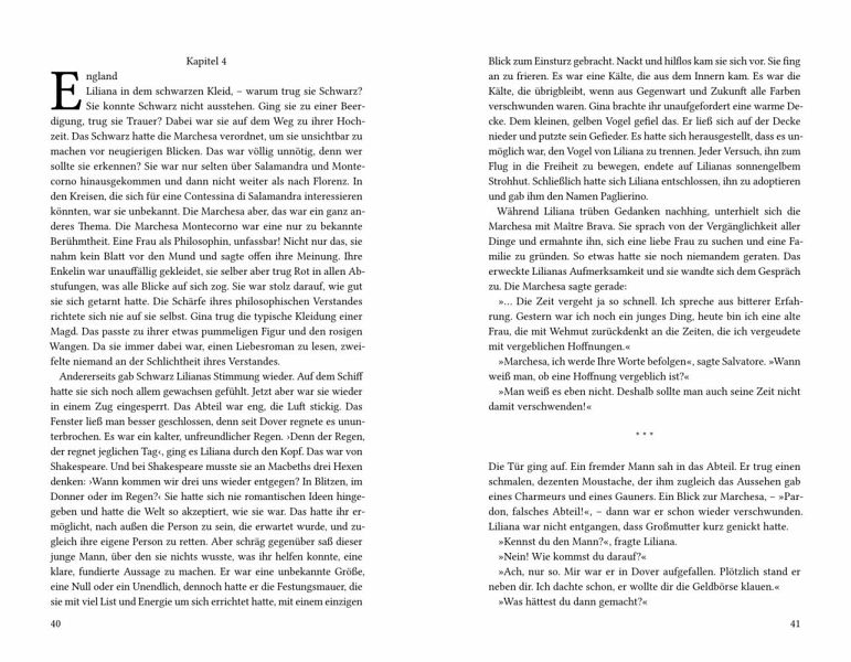 Contessina Liliana di Salamandra reist zusammen mit ihrer Großmutter und der Zofe Gina aus dem sonnigen Italien in das viktorianische England. Dort soll Liliana den Duke of Everweard heiraten, als Bedingung dafür - ihren Vater aus dem Gefängnis freizubekommen.