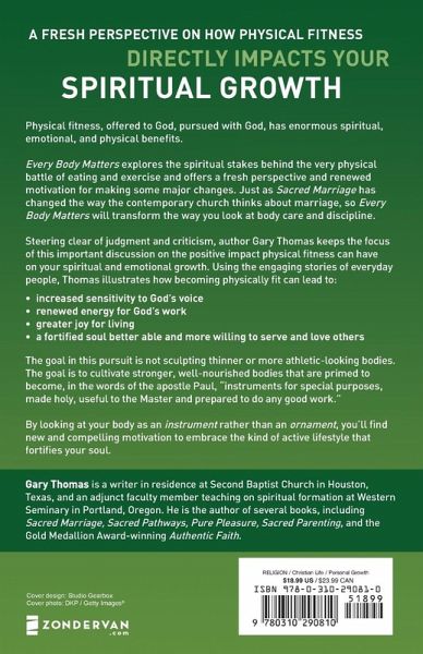 Every Body Matters explores how positively addressing our physical condition can lead to a fortified soul better able to serve and love others. Through confessional and engaging stories of people who intentionally got physically fit as a way to grow spiritually, Thomas draws a fresh, compelling, non-judgmental body/soul correlation.