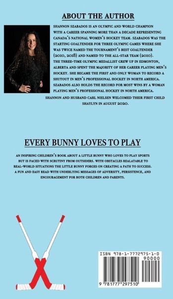 Written and illustrated by Olympic and World Champion Shannon Szabados. As a new mother Shannon wanted to write a book that was more than just words on paper, something that her daughter could learn from. This is an inspiring children's book about a little bunny who loves to play but is faced with scrutiny from outsiders. With obstacles relatable to real-world situations the little bunny forges on creating a path to success. A fun and easy read with underlying messages of adversity, persistence and encouragement for both children and parents.